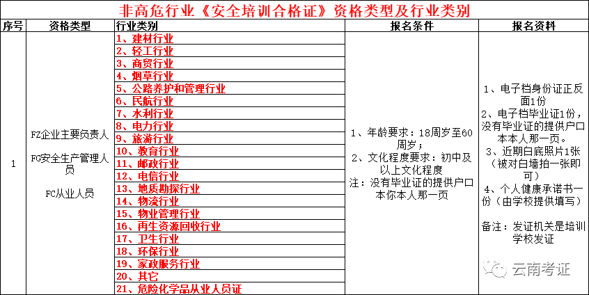 我校将在2023年按照应急管理局的要求组织开展面向全省的特种作业操作证书的资格复审和新办工作,本次主要针对高压电工作业人员、低压电工作业人员、金属焊接(切割)作业人员、高处作业人员、危化品作业人员、非高危行业生产经营单位主要负责人与安全生产管理人员等多个工种培训考证,现将此次参训的相关事项作如下通知: