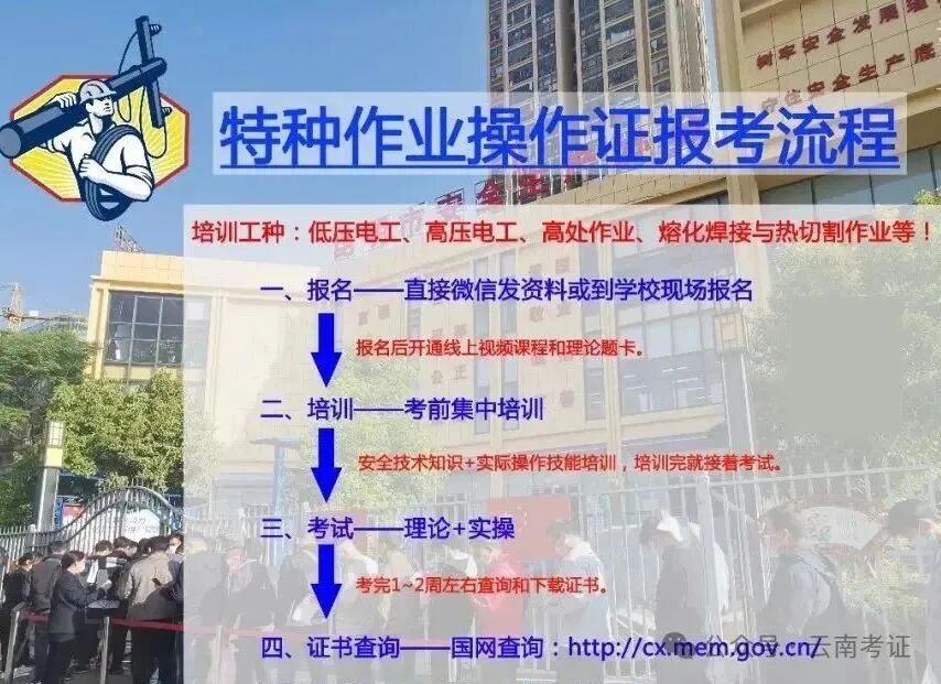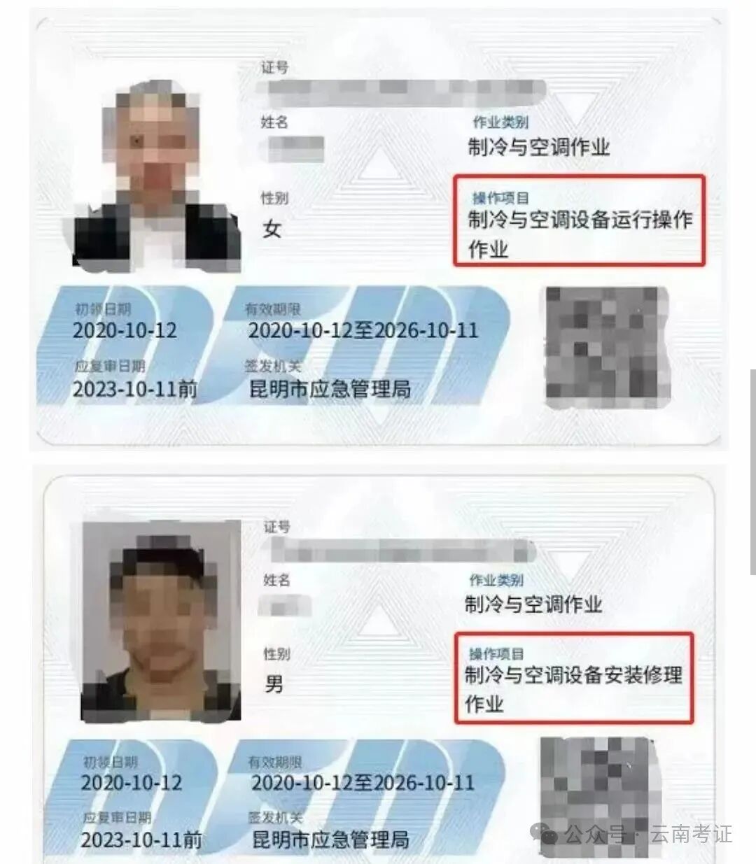 制冷与空调作业 制冷与空调作业介绍 指对大中型制冷与空调设备(制冷量≥58KW)运行操作、 安装与修理的作业。各种中央空调与冷库制冷设备的操作人员、各种制冷设备(含家用空调、冰箱、冰柜、冷库、中央空调等)的安装维修人员,均为制冷作业人员,它适用于化工类(石化、化工、天然气液化、工艺性空调)生 产企业,机械类(冷加工、冷处理)生产企业,食品类(酿造、饮 料、速冻或冷冻调理食品)生产企业,农副产品加工类(屠宰及 肉食品加工、水产加工、果蔬加工)生产企业,仓储类(冷库、 速冻加工、制冰)生产经营企业,运输类(冷藏运输)经营企业, 体育运动类(人工滑雪场、人工滑冰场),经营企业和事业等单位的大中型制冷设备运行、安装、修理操作作业,它属特殊工种,由安全生产监督管理局统一制作,各省级安全生产监督管理部门负责签发。特种作业操作证(制冷作业)全国通用,实行持证上岗制度。 证书样本 制冷与空调作业证分为:制冷与空调设备运行操作证和制冷与空调设备安装修理证 01 报考条件 报考条件主要包括年龄、健康状况、身份证明、学历证明 02 报考流程: 第一、报名:提交资料报名,开通线上学习平台; 第二、参加线下培训:线上课程学完后参加线下培训; 第三、参加考试:理论+实操考试,及格分数为80分; 第四、拿证:考试通过后两周左右查询和下载证书。 03 报名所需资料 1、身份证正反面照片 2、初中或初中以上毕业证照片(没毕业证的提供户口本本人页照片) 3、电子版白底照片 4、个人健康承诺书(学校提供模板,本人签字按手印)5、特种作业人员取证申请表(学校提供模板) 04 报名联系:15911525468王老师 扫一扫添加王老师微信 在线报名 05 关于考试 1、考试形式:理论(电脑机考) 2、合格标准:满分100分,≧80分合格 3、考试时间:7月18日考试(具体日期以审批为主) 4、考制冷证需要提前报名,一般情况下是当月报名,当月安排培训考试,考试合格后1-2周左右申请电子证书。所以有需要考证的学员应当提前做好相关准备。该证书全国联网查询,全国通用。 06 证书查询 方法一:查询官网:http://cx.mem.gov.cn/ ,或登录应急管理部政府网站(http://www.mem.gov.cn/),从“服务”中的“查询服务”进入“特种作业操作证及安全生产知识和管理能力考核合格信息查询平台”,查询证书信息。 国家安全生产考试 本平台面向社会公众提供安全生产知识和管理能力考核合格信息及特种作业操作证查询服务。 公众号