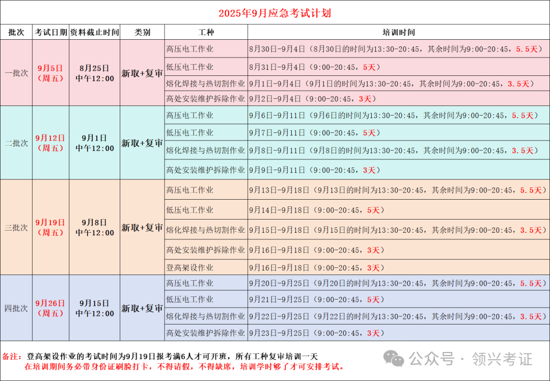复审:高处作业、低压电工、焊工、高压电工 (注:考试时间暂定,最终时间以应急管理局审批结果为主,每批考试提前13天截止报名,请大家不要错过!)